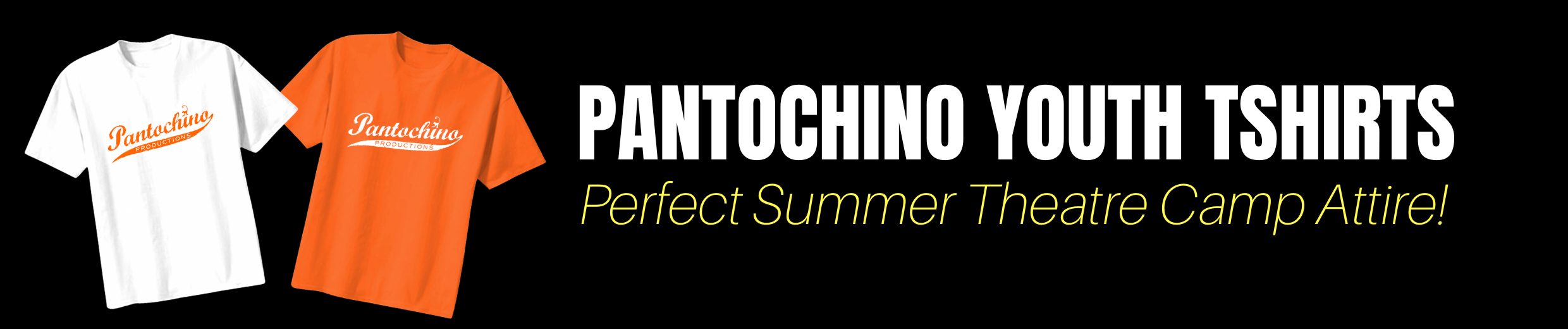 Our cast members love to show off their Pantochino T-Shirts available in youth sizes. Be sure to order them early! Thank you to our friends at West Shore Associates for making these products available to our Summer Theatre Camp families.